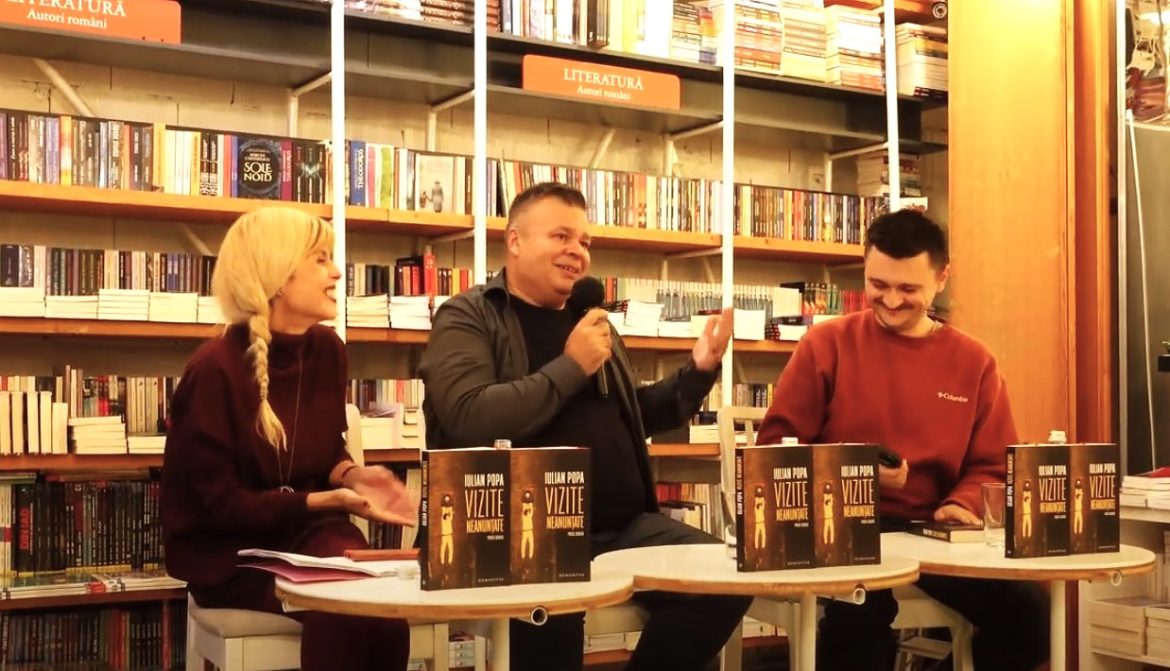 Sper că imaginile surprinse la evenimentul de joi seara de la Librăria Humanitas de la Cișmigiu, unde Iulian și-a lansat volumul „Vizite neanunțate” alături de Alina Purcaru și de Victor Cobuz, să fi surprins măcar un pic din personalitatea acestui autor foarte, foarte promițător. Enjoy!