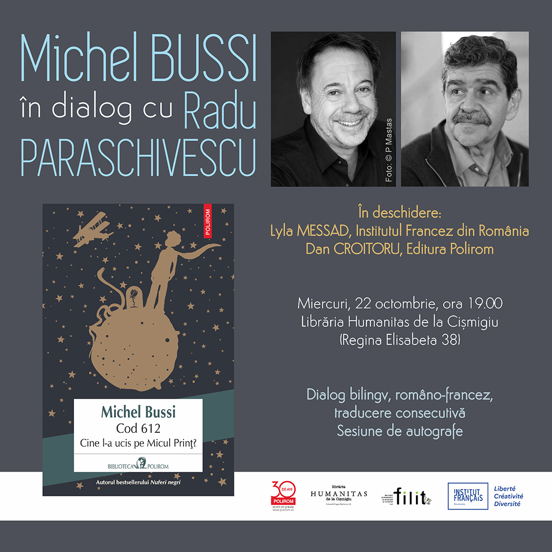 Michel Bussi vine în România în perioada 21-25 octombrie, la invitația Editurii Polirom și a Festivalului Internațional de Literatură și Traducere Filit Iași, în parteneriat cu Institutul Francez din România.