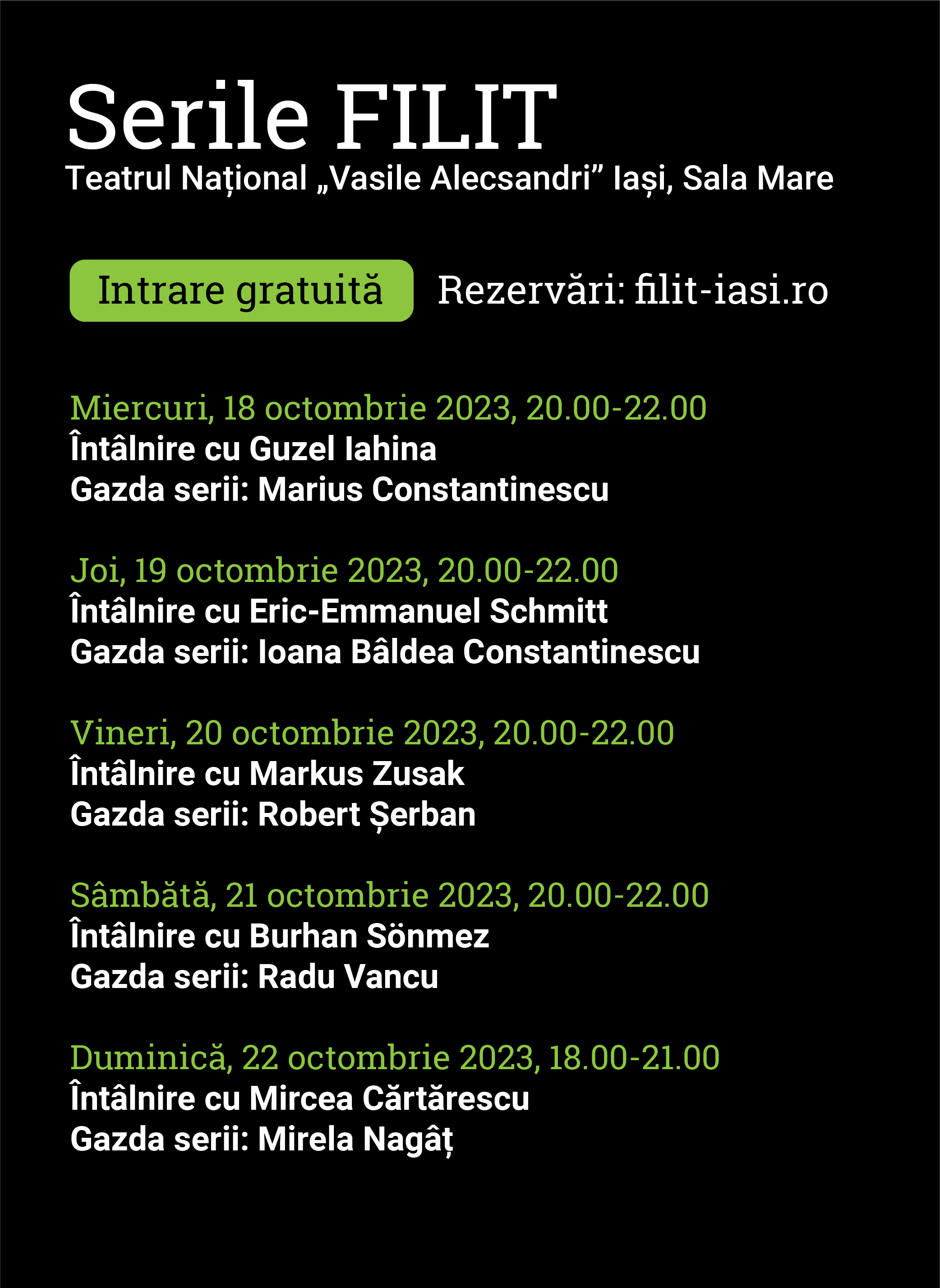 Programul SERILOR FILIT 2023 este următorul: