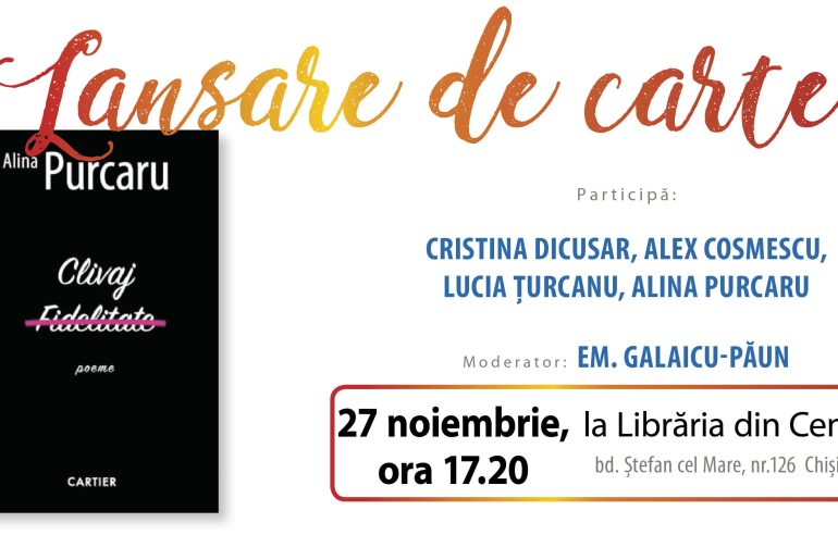 Joi, 27 noiembrie, la ora 17.20, la Librăria din Centru (bd. Ștefan cel Mare, nr.126)…