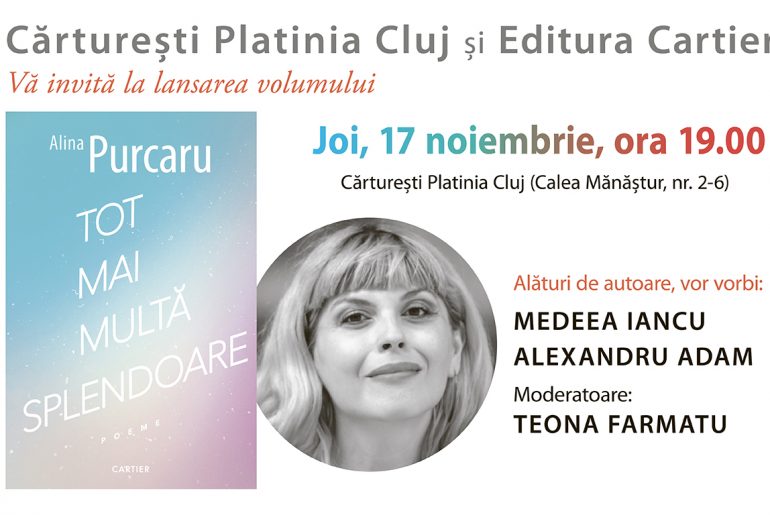 Joi, 17 noiembrie, la 19.00, va avea loc lansarea volumului de poeme Tot mai multă…