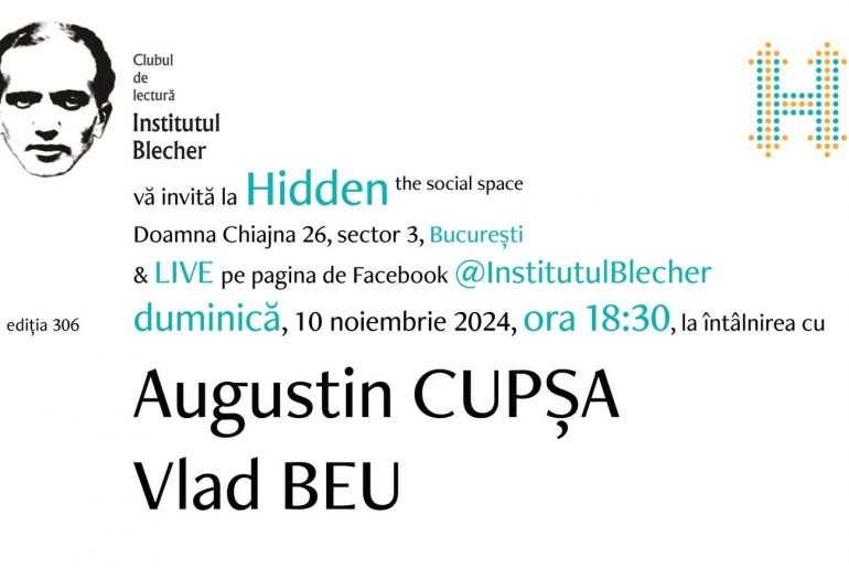 Clubul de lectură Institutul Blecher vă invită duminică, 10 noiembrie 2024, de la ora 18:30,…