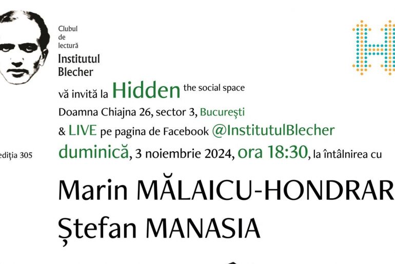 Clubul de lectură Institutul Blecher vă invită, duminică 3 noiembrie 2024, de la ora 18:30,…