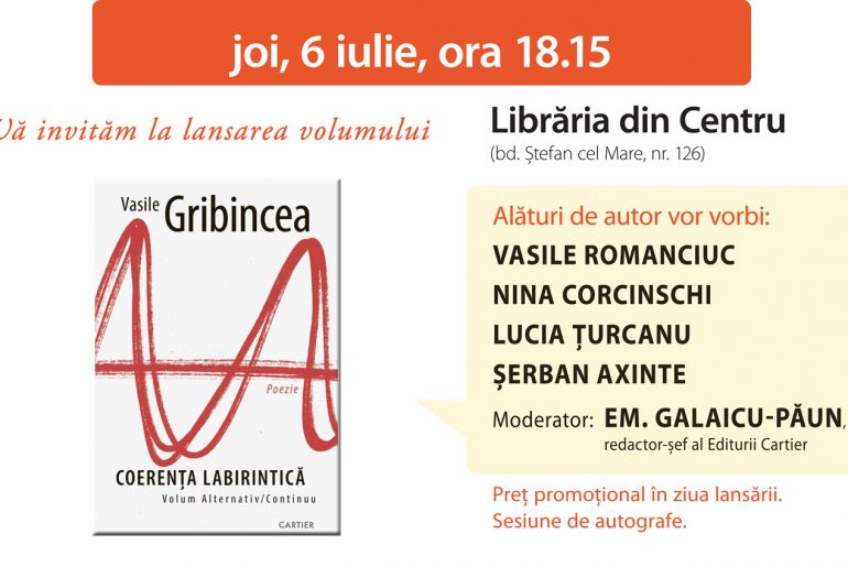 Articole „Coerența labirintică”, de Vasile Gribincea, la Librăria din Centru By Gelu Diaconu 2023-07-03 Joi, 6 iulie crt, la ora 18.15, la Librăria din Centru (bd. Ștefan cel Mare,…